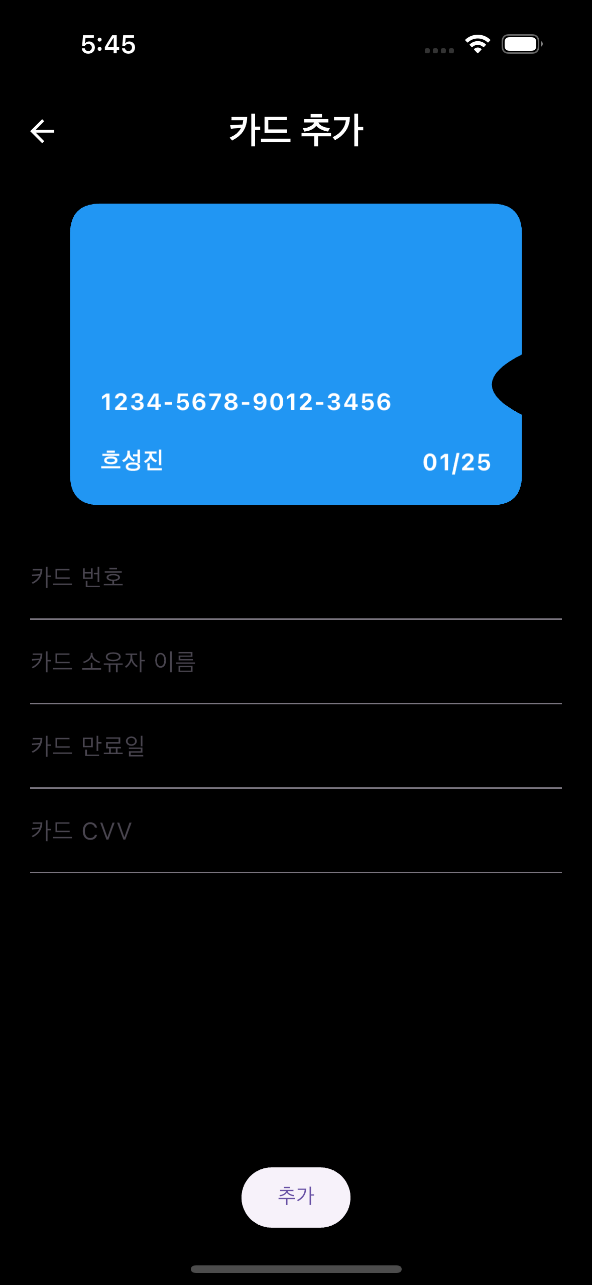 개인적으로 아쉽지만 구현 못한 부분 (카드번호 특정 범위 가려주기, 로컬 DB의 구체화 등) 도 있었다.